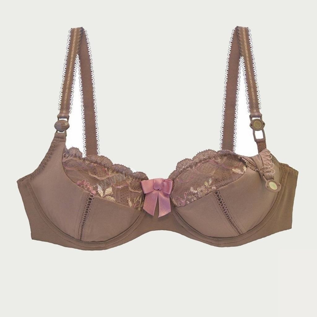 Super zachte naadloze zwangerschapsbh in het beige met magnetische voedingsclips. Deze voedingsbh heeft beugels en heeft 4 rijen haakjes. Mooie kanten cups