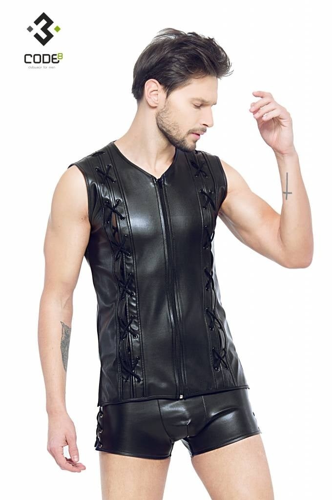 * Code8 by XXX COLLECTION Eco-leder mouwloos shirt met sierveters (XS -S-2XL-4XL)