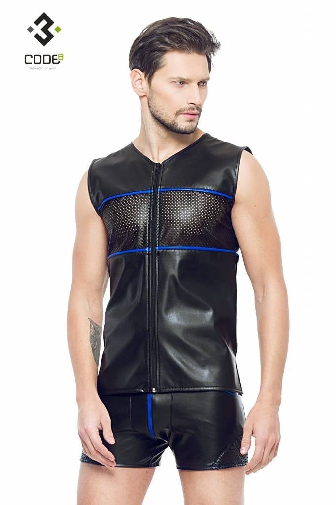 * Code8 by XXX COLLECTION Eco-leder mouwloos shirt ( XS-S-M-2XL-3XL-4XL)