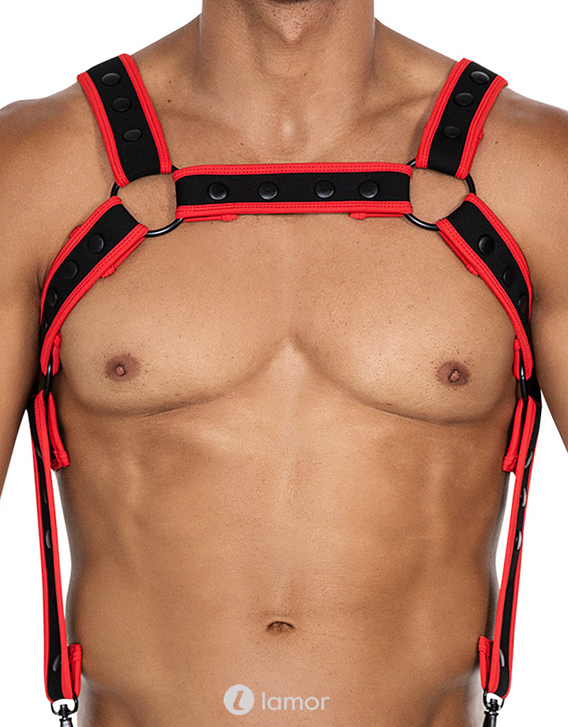 / * CUT4MEN Zwart/Rood Neopreen borstharnas05