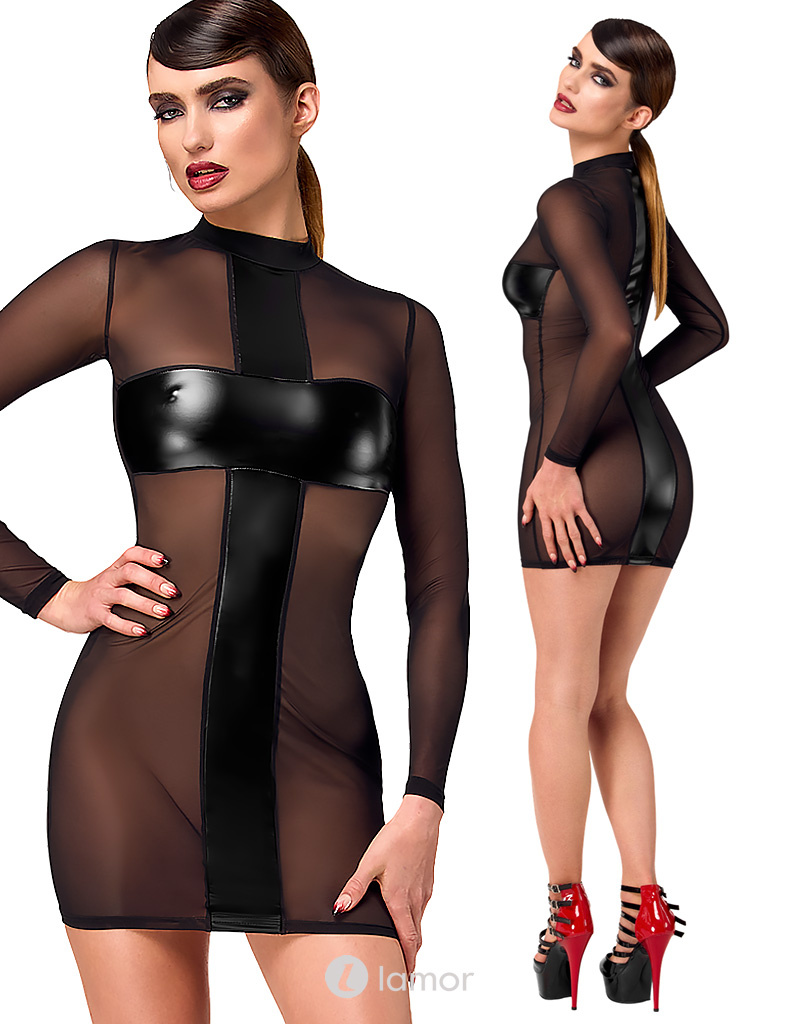 / * NOIR handmade Crossfire Mesh & Wetlook Mini Jurk,F369