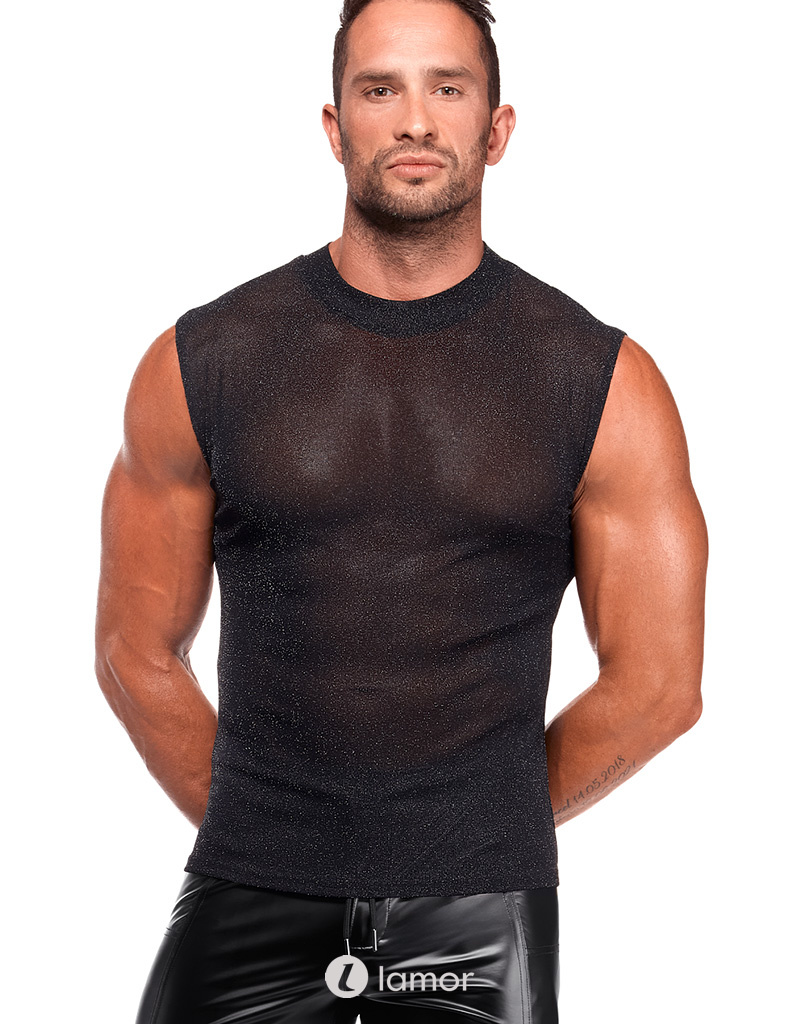 / * NOIR handmade Onyx Skin Tank Transparant Mesh HerenTop, H083